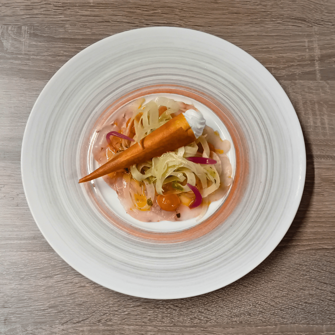 La carte évolue très régulièrement, au fil des saisons, des arrivages et de l’inspiration de la brigade. Un poisson de ligne fraîchement débarqué, une belle viande locale, un légume bien mûr, une idée qui surgit… et c’est un nouveau plat qui naît.